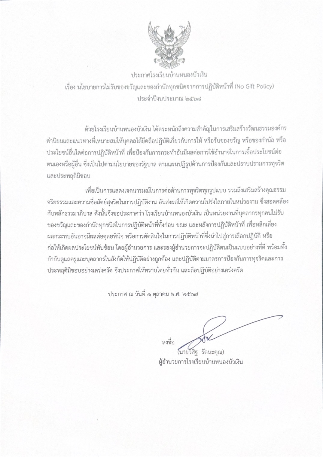 ประกาศ No Gift Policy (ฉบับภาษาอังกฤษ)